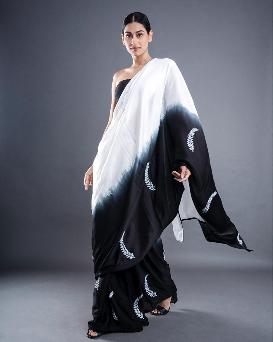 ATBW Leaf Print Satin Ombre Saree (saree only)