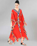 FIRST RESORT BY RAMOLA BACHCHAN Red Geometric Mid Length Kaftan
